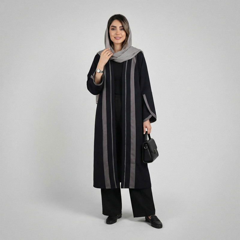 جنس پارچه: تنسل ترکیبی سایز بندی: 44 تا 54 آستین مدل دار نوار دوزی قد مانتو: 115 سانتی متر