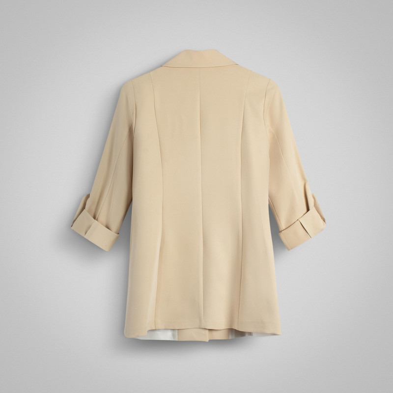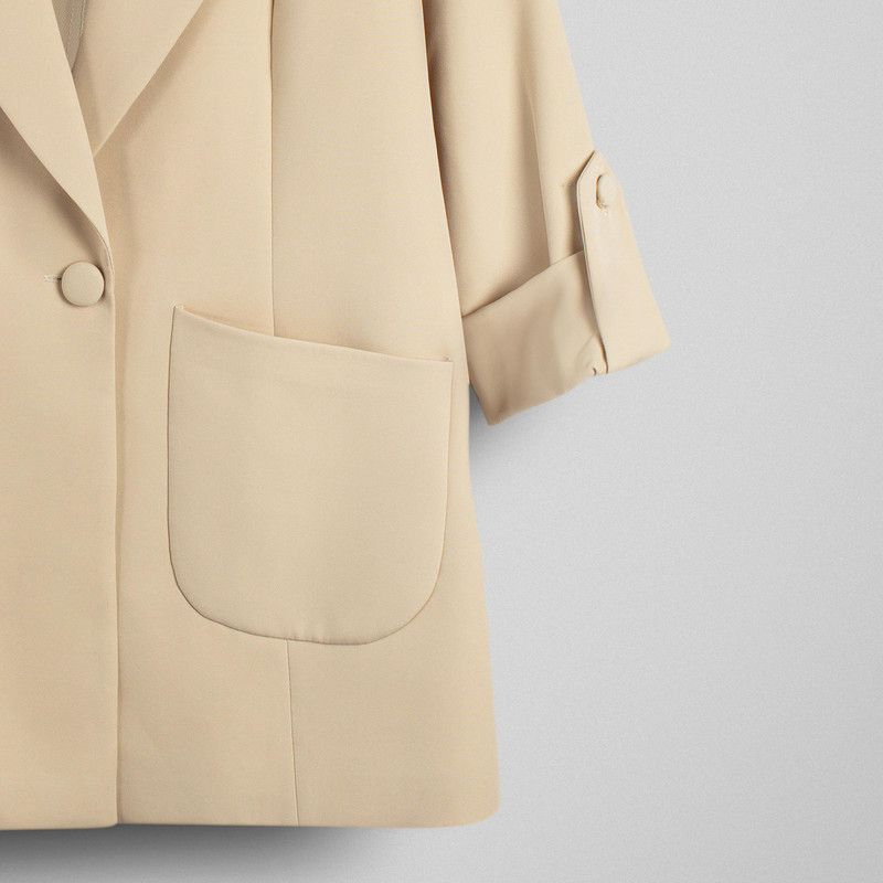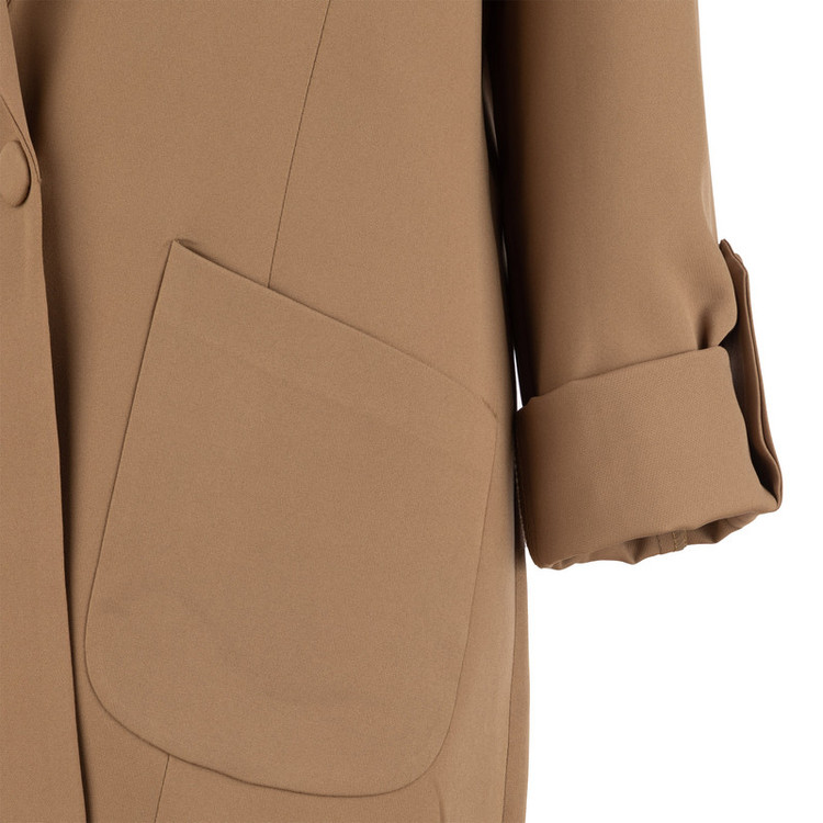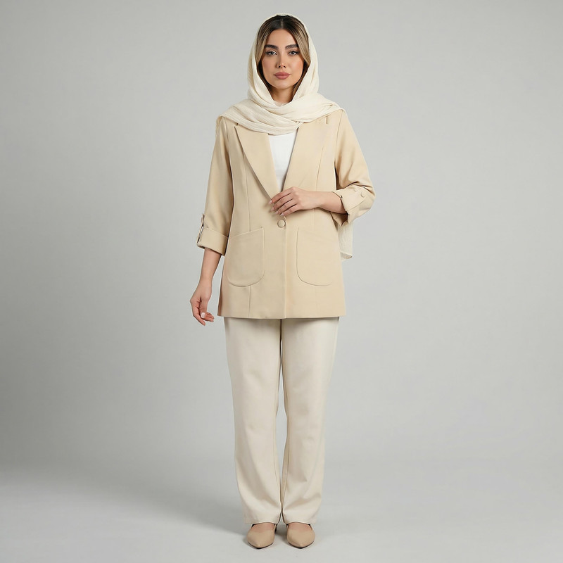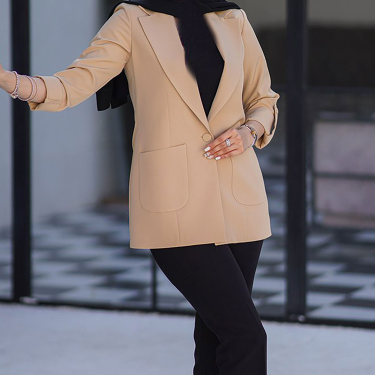جنس پارچه : مازراتی 320 گرم تویست سایزبندی: 38 تا 40 دور سینه سایز 38: 92 دور سینه سایز 40: 96 دور سینه سایز 42: 100 دورسینه سایز 44: 104 تک دکمه 2 عدد جیب اریب آستین پاگون دار جلو آستردار مدل یقه: انگلیسی قد: 75