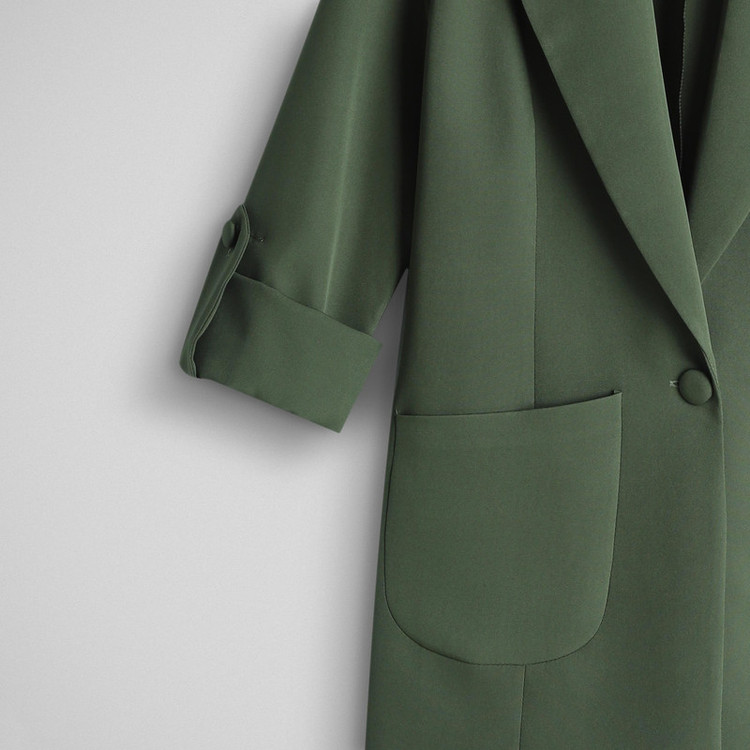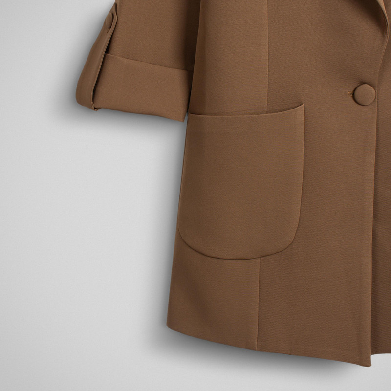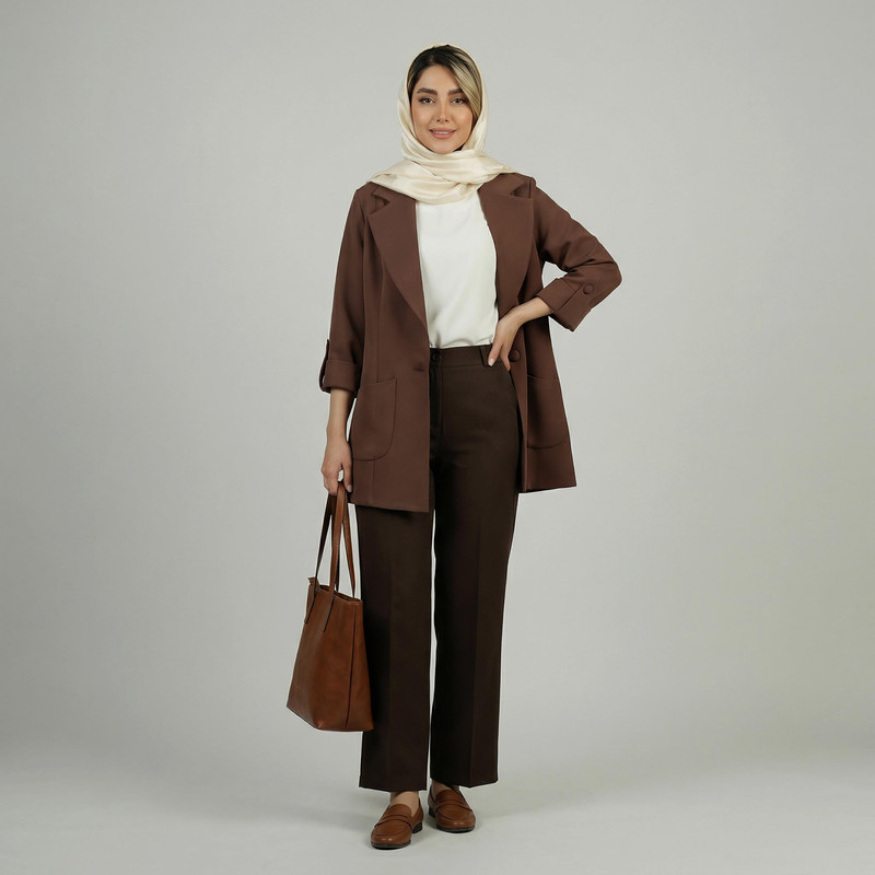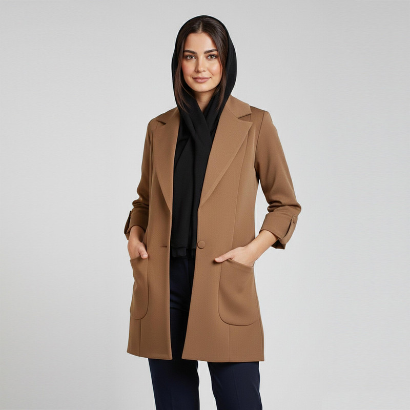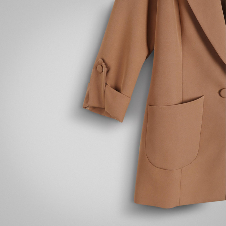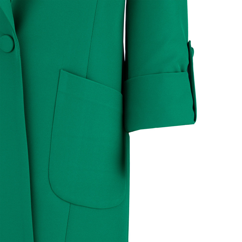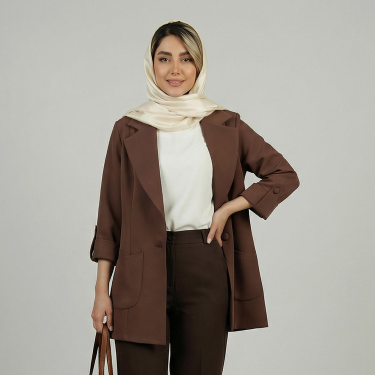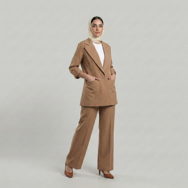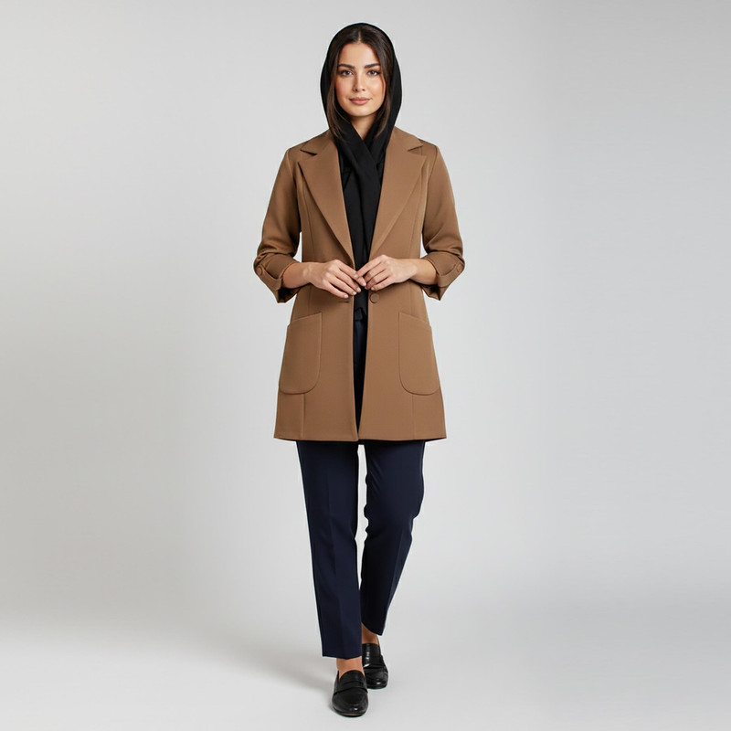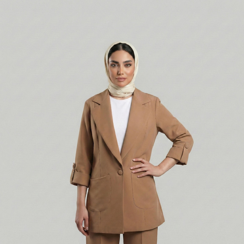 جنس پارچه : مازراتی 320 گرم تویست سایزبندی: 38 تا 40 دور سینه سایز 38: 92 دور سینه سایز 40: 96 دور سینه سایز 42: 100 دورسینه سایز 44: 104 تک دکمه 2 عدد جیب اریب آستین پاگون دار جلو آستردار مدل یقه: انگلیسی قد: 75