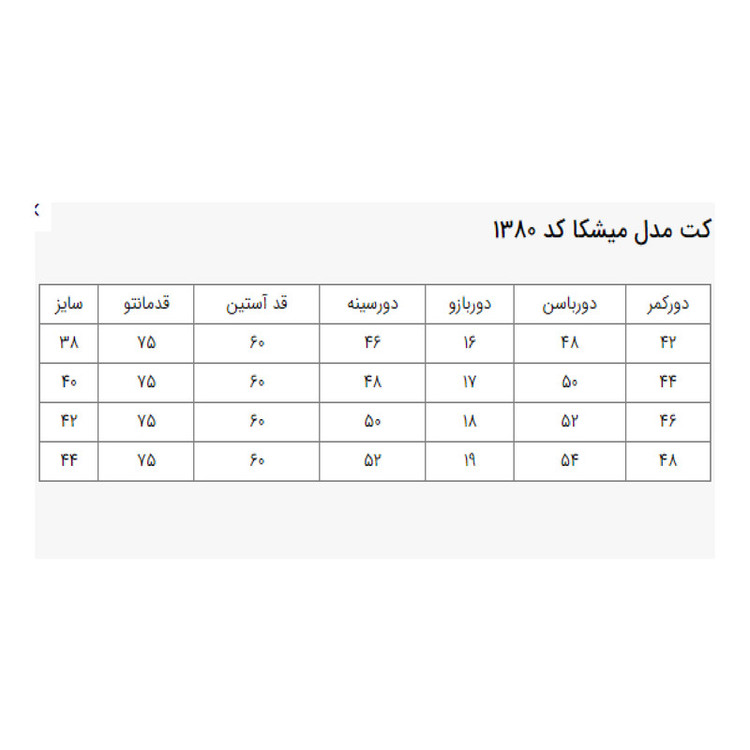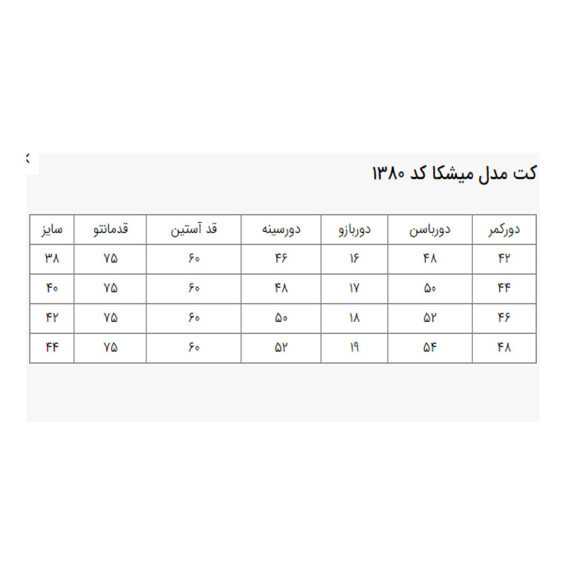 جنس پارچه : مازراتی 320 گرم تویست سایزبندی: 38 تا 40 دور سینه سایز 38: 92 دور سینه سایز 40: 96 دور سینه سایز 42: 100 دورسینه سایز 44: 104 تک دکمه 2 عدد جیب اریب آستین پاگون دار جلو آستردار مدل یقه: انگلیسی قد: 75
