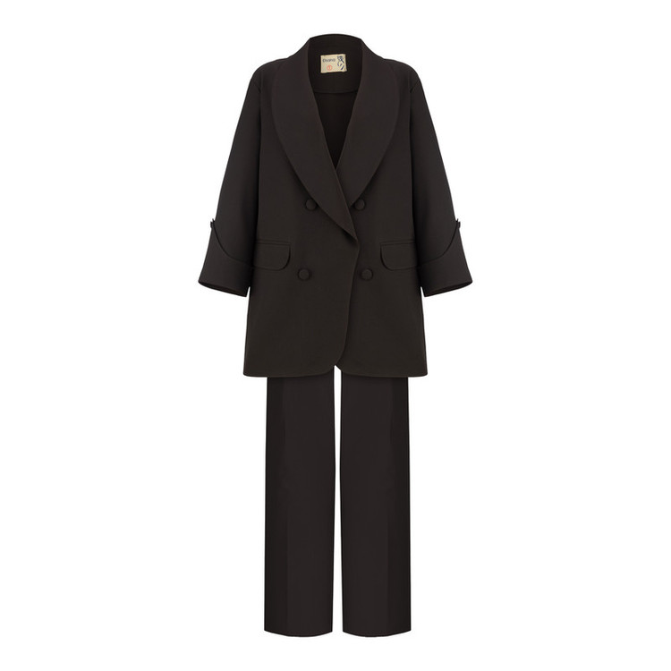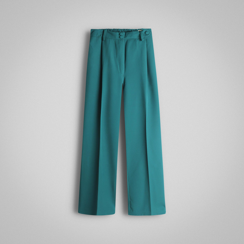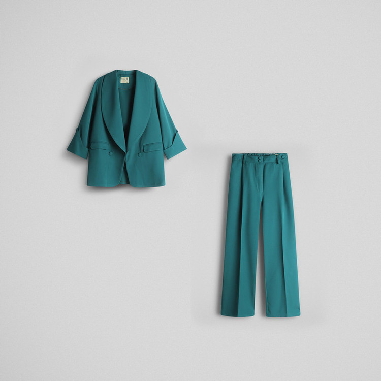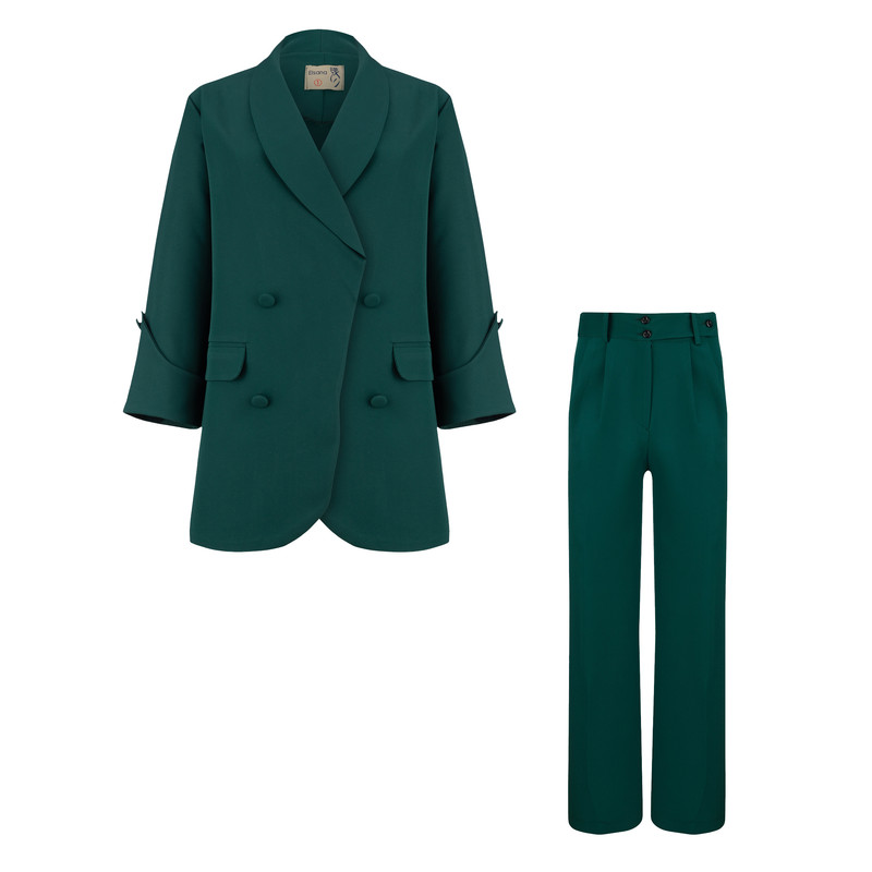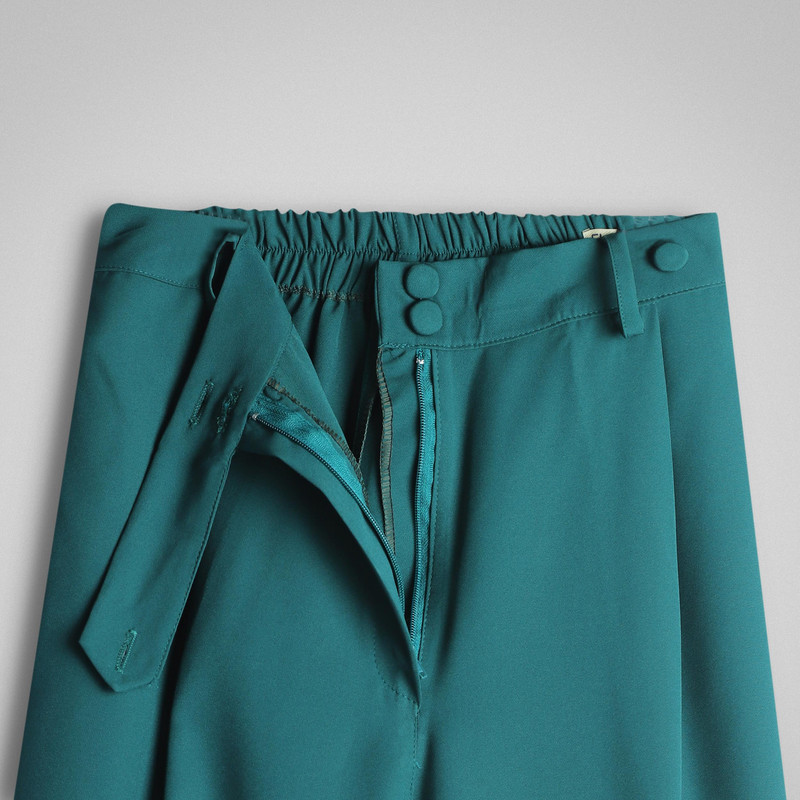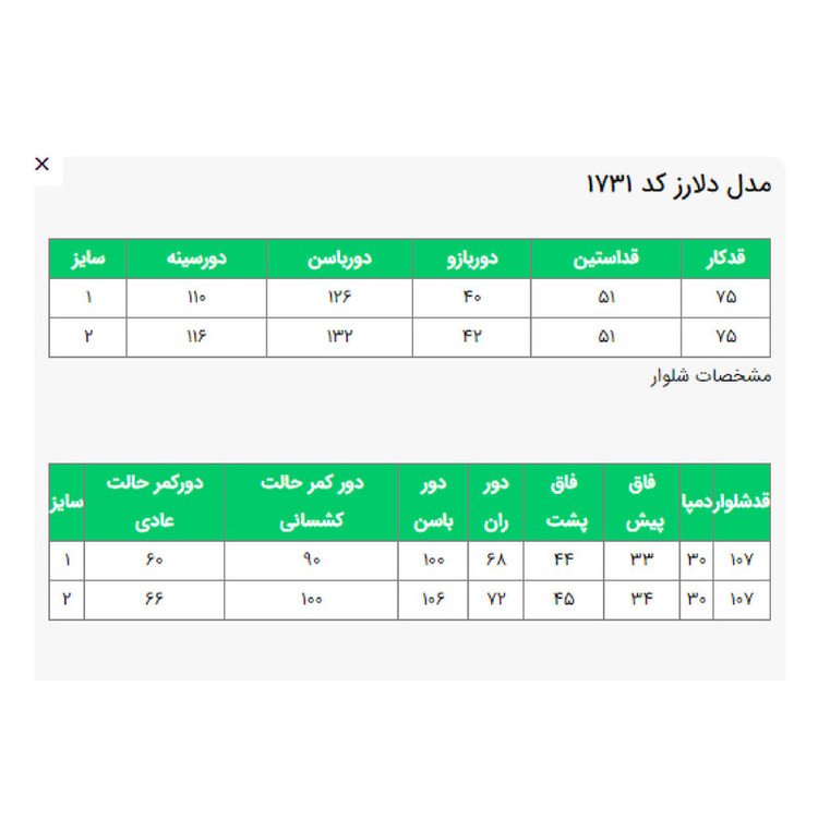 جنس پارچه مازراتی 320 گرم توییست سایزبندی : 1 و 2 سایز 1مناسب: 36 تا 42 سایز 2 مناسب: 44 تا 48 دکمه نما جلو شلوار پیله بسته شددن شلوار زیپ و دکمه پشت شلوار کمر کش شلوار بگ