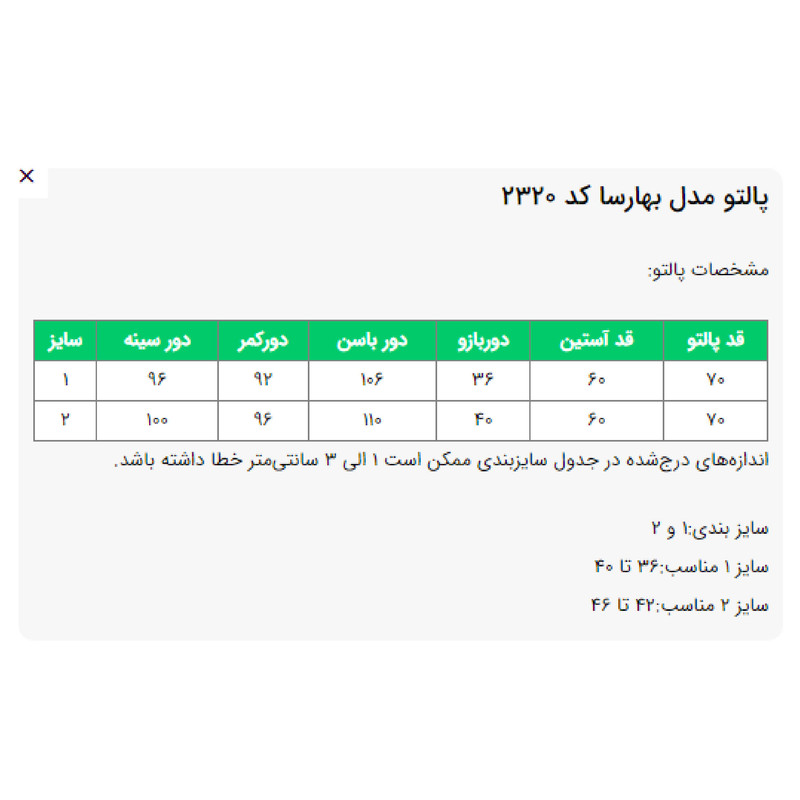 نوع پالتو زنانه